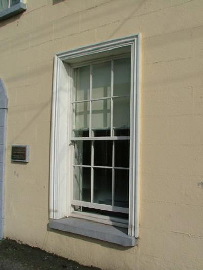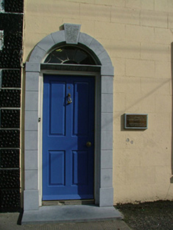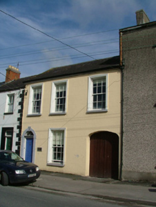 Terraced three-bay two-storey former house, built c.1840, with integral carriage arch. Now used as an office. Fronts directly onto street. Pitched slate roof with terracotta ridge tiles, chimneystack to rear, cast-iron rainwater goods and coping at gable end. Ruled-and-lined render to facade. Timber sash windows with stucco surrounds and stone sills. Round-headed door opening with modern tooled limestone surround, spider web fanlight, replacement timber door and modern limestone step. Brass plaque on wall to one side of door bears business name. Double timber doors to integral carriage arch.