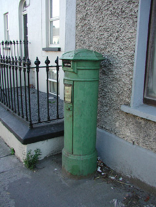 This freestanding pillar box contains some highly unusual detailing. The survival of the hexagonal domed cap is unique within the county. The raised lettering gives this piece of street furniture a notable character. Dating from 1866 and manufactured at Dudley, this pillar box displays its own provenance. This English firm of founders, Cochrane & Co. of Dudley, was in operation from 1857-1879.