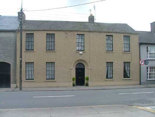 Terraced five-bay two-storey house, built c.1810, with two-storey return. House fronts directly onto street. Historically in use as a police barracks. Pitched tiled roof with rendered chimneystacks and cast-iron rainwater goods. Smooth rendered plinth and pebbledashed wall. Timber sash windows with tooled stone sills. Replacement timber casement windows to rear elevation and return. Round-headed door opening with coved stucco surround and timber panelled door with spoked fanlight. Stone outbuildings with pitched slate roof abutting house and walled garden to rear site.