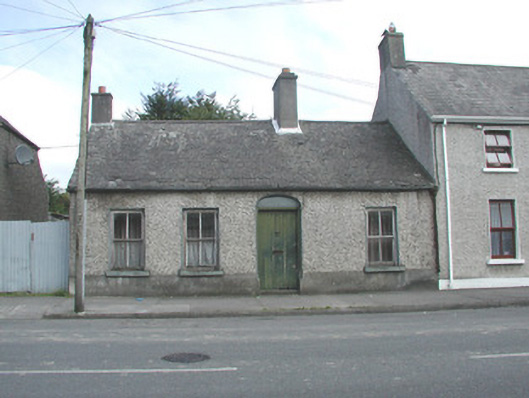 End-of-terrace four-bay single-storey house, built c.1870. Fronting directly onto street. Pitched slate roof with terracotta ridge tiles, rendered chimneystacks and cast-iron rainwater goods. Smooth rendered plinth and roughcast rendered walls. Timber sash windows with tooled stone sills. Segmental-headed door opening, blind fanlight and timber battened door.