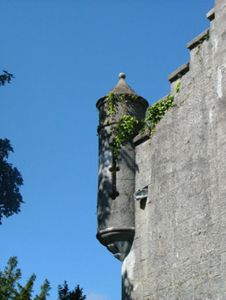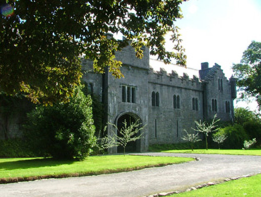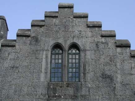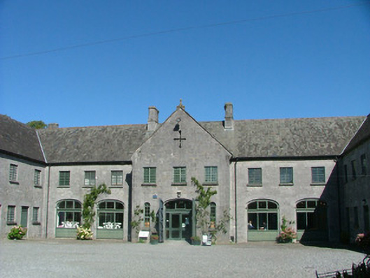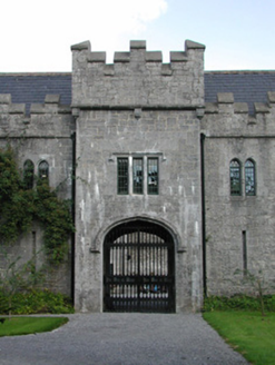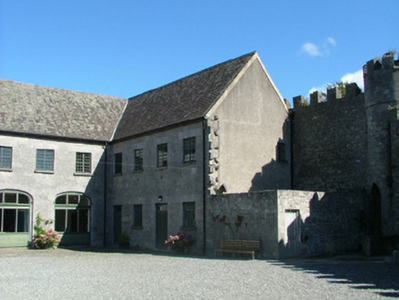 These fine former stables, situated just within the walls of the demesne, are part of an important group of estate architecture. Originally they provided not only for haylofts upstairs but further workshops downstairs to completment those beside the castle. The use of stone in these buildings is striking in the variety of window, door and carriage openings which grace the three ranges that surround an inner courtyard. The stepped and crenellated parapet is another feature which stands out as does the small, but perfectly placed, corner turret seen on the south-west corner of the western range. These former stable buildings are significant as part of a group of structures associated with the demesne and architecturally in their own right.