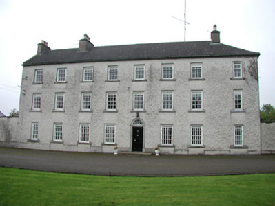 Detached eight-bay three-storey house, built c.1730, with extension to rear c.1840, and single-bay extension to west and two-bay extension to east. Flanked by screen walls. Situated amongst fields with mature trees and adjacent to site of former Monasteroris monastery. Pitched slate roof, hipped to west, with rendered chimneystacks. Hipped slate roof to rear extension with rendered chimneystacks. Pebbledashed walls with limestone ogee cornice. Square-headed window openings with tooled limestone sills and timber sash windows. Round-headed door opening to front elevation with limestone architrave surround with keystone and cornice. Timber panelled door and decorative batswing fanlight. Farmyard to north-east of house with single- and two-storey outbuildings with pitched and hipped slate roofs, and roughcast rendered walls. Outbuildings to north of yard with limestone flat arches to window and door openings. Walled garden to west of house. Gate lodge to south-west of house.