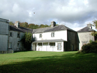 Detached country house, built in 1790, with pedimented three-bay two-storey front with porch and terminating full-height bows added c.1820. Eight-bay two-storey mews, c.1800, to rear. Set within its own grounds. Roof hidden by rendered parapet. Rendered chimneystacks with terracotta pots. Pitched slate roof to mews. Ruled-and-lined rendered walls with plinth, continuous sill courses to first floor, cornice and strip pilasters between bays. Roughcast render to mews walls. uPVC replacement windows to front elevation with timber mullions and transoms, tooled stone surround and sills. Bracketed cornices to ground floor windows. Timber sash windows to sides and rear with tolled stone surrounds. Limestone block-and-start surrounds to mews windows with wrought-iron bars. Ashlar porch to front with double timber doors and limestone steps. Stable yard to rear accessed through segmental-headed carriage arch set in pedimented ashlar surround with oculus and bellcote. Timber battened doors. Multiple-bay two-storey ranges set around tow courtyards incorporating mews. Block-and-start surrounds to windows and doors. Segmental-headed carriage arches with dressed limestone surrounds. Walled garden to south-east with random coursed boundary walls and three-bay two-storey former gardener's house, now derelict. Concrete piers at house end of avenue. Three-bay single-storey gate lodge. Octagonal limestone ashlar gate piers with wrought-iron gates.
