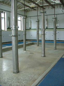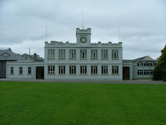 The castellated sports pavilion, overlooking the playing fields of Mount Saint Joseph College, is a fine example of mid twentieth-century design. Its symmetrical façade with clean vertical and horizontal lines is decorated with crenellations and a square-profiled clock tower. Attention to detail is continued inside with the handsome use of contemporary materials including glazed wall tiles and colourful terrazzo floors. The shower block is particularly notable due to the sunken floor, metal ceiling trusses and freestanding showers. Although disused the sports pavilion continues to express a charming character.