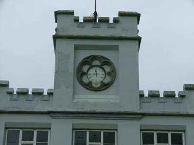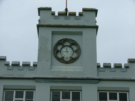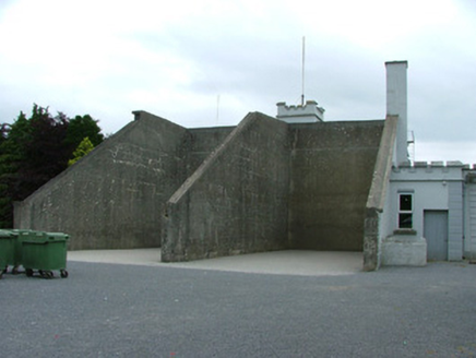 Detached seven-bay two-storey former sports pavilion, built c.1940, with central clock tower, flanking entrance porches and shower-block to south. Now disused. Set within grounds of Mount Saint Joseph College. Flat roof hidden by castellated parapet. Pitched slate and corrugated sheeting roof with lantern to shower block. Rendered walls with string courses and plinth course. Metal casement windows with tooled stone sills. Replacement glazed aluminium doors to porches. Timber battened doors to rear of shower block. Double handball alley abuts rear elevation. Glazed wall tiles and terrazzo floor to interior. Metal ceiling trusses and showers to shower-block. Concrete stairs with timber newel posts, handrails and wrought-iron balusters.