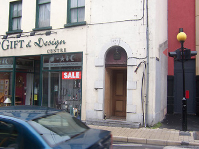 Terraced four-bay three-storey over basement house, built c.1790, extensively renovated c.1880. Formerly a public house, now in use as a retail outlet. Pitched artificial slate roof, gable to west end higher than present roof level. Ruled-and-line rendered over limestone plinth with raised block quoins to west end. Square-headed window openings with cut-stone sills, two-over-two pane timber sliding sash and timber casement windows. Round-headed doorcase to east end with block-and-start surround, replacement timber door and plain fanlight over. Square-headed doorcase to west end with timber panelled door with plain overlight above. Modern shopfront to ground floor. Road-fronted and projects slightly from buildings to either side.