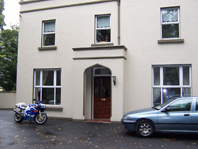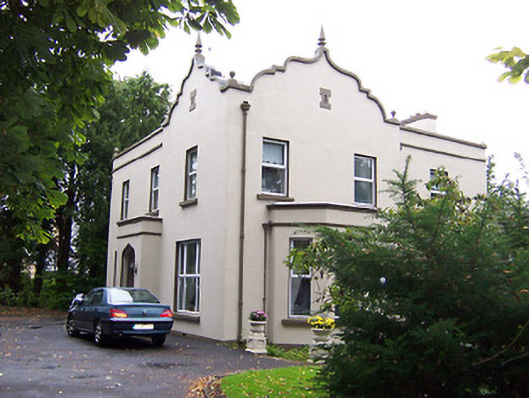 Detached three-bay two-storey house, built c.1890, with projecting single-bay single-storey porch to west and single-storey canted bay window to south. Pitched artificial slate roof with rendered chimneystacks with limestone string course and limestone coping. Cast-iron rainwater goods. Dutch gables to southwest corner with limestone coping and finials. Ruled-and-line rendered walls with string course and cornice detailing to porch and bay window. Square-headed openings with replacement windows, tripartite openings to ground floor. Ogee-headed opening to porch with square-headed doorcase with glazed timber doors and overlight above. Set back from road in mature grounds.