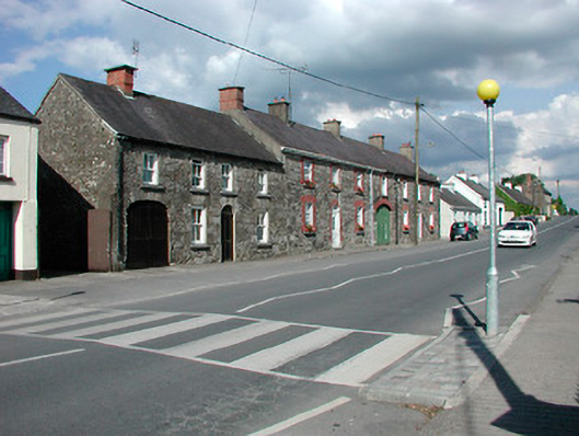 End-of-terrace four-bay two-storey townhouse with integral carriage arch, built c.1840. Pitched natural slate roof with clay ridge tiles, cast-iron rainwater goods and a brick chimneystack. Roughly coursed limestone rubble walls. Square-headed openings with two-over-two pane timber sliding sash windows and cut-stone sills. Round-headed doorcase to centre with cut-stone voussoirs, replacement door and plain fanlight over. Segmental-headed opening to carriage arch with cut-stone voussoirs, timber door and iron fittings. Road-fronted with large garden to the rear.