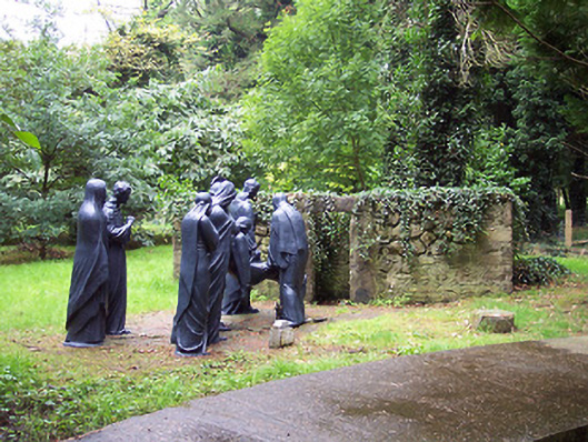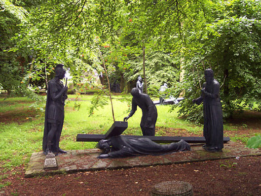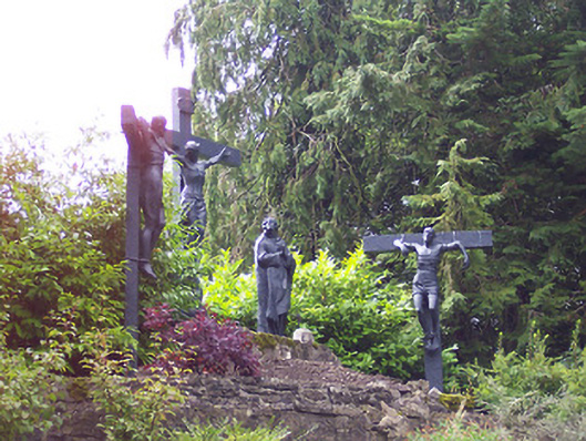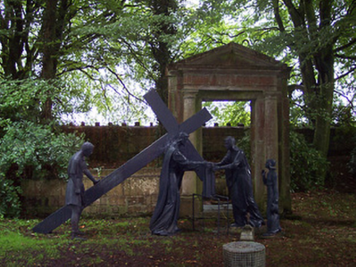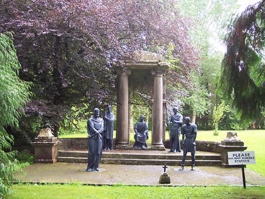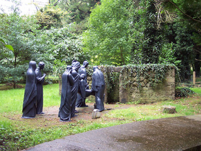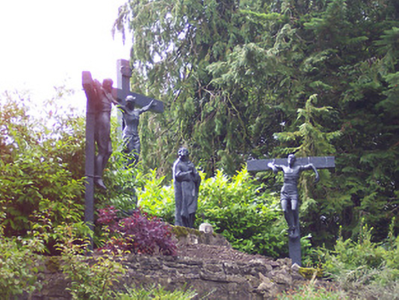 An atmospheric collection of statues arranged around an attractive landscaped garden. It is very unusual to have outdoor Stations of the Cross, and this collection may well be unique. They now form part of a local amenity within the grounds of Multyfarnham Abbey. These statues previously lined the main avenue to the abbey but were moved to their present location c. 1975.