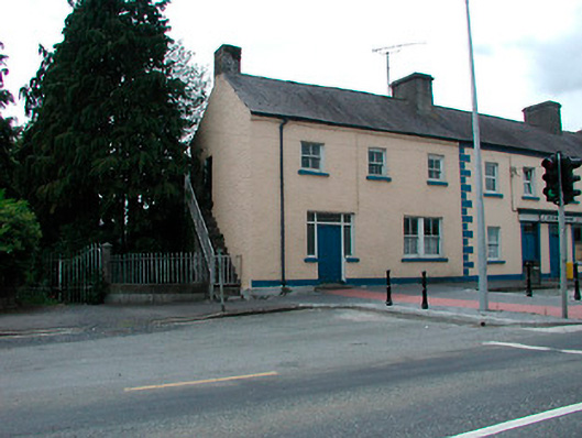 End-of-terrace three-bay two-storey former court house, built c.1790, now in use as private house. Pitched natural slate roof with a rubble limestone chimneystack to east end, (shared) rendered chimneystack to west end and cast-iron rainwater goods. Roughcast render to walls with projecting eaves course. Square-headed window openings with cut stone sills and two-over-two pane timber sliding sash windows, paired window to ground floor. Square-headed doorcase with glazed surround and double timber panelled doors to east end. Square-headed doorcase at first floor level on east side elevation, reached by flight of cut stone steps with cast-iron railings. Road-fronted adjacent to the entrance to former Church of Ireland church.