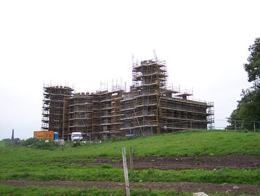 Detached multi-bay three-storey over basement castellated Gothic Revival castle on complex plan, built c.1780. Originally constructed as a regular seven-bay three-storey over basement Georgian house with a full-height three-bay canted bay window to centre of entrance façade (northwest) and three-bay bow to centre of rear façade (southeast). It was enlarged on a number of occasions between c.1820 and c.1860 with the addition of various towers on square and polygonal plans, various two-storey extensions to the northeastern end and by the addition of battlements to the parapets to create a Gothic castle on irregular plan. It was gutted c.1950 but is currently been restored and rebuilt as a private residence (2004). Original part of the building was constructed of rubble limestone with a lime render. The later portions are constructed of snecked limestone with ashlar trim. Roof is now gone (possibly flat roofed) but was hidden by battlemented parapets with ashlar crenellations and machicolations. Window openings are generally square-headed with cut stone sills and hoodmouldings, some with intricate stone tracery. A number of round-headed openings are to be found on the ground floor and three-light mullioned windows flank the main entrance to northwest façade. Main entrance to centre of canted bay on northwest facade with pointed-arch headed moulded stone surrounds and hoodmoulding, originally with round-headed fanlight and studded timber double-doors. A tunnel to northeast linked the castle to the walled gardens. Located in the centre of extensive parkland demesne with walled garden to northeast and variety of follies, lodges and an ice-house to grounds.