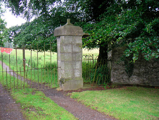 An impressive gateway and gate lodge, which retains their early form and character. The gate lodge built into the quadrant wall is an unusual and noteworthy feature. The fine gateway, well-built in ashlar limestone, and the wrought-iron gates are of artistic merit. This gateway and attendant gate lodge originally served Rock Brook House, a five-bay two-storey property in the ownership of Isdell Esquire c. 1780. This gateway remains and attractive feature in the streetscape of Ballynacarrigy and is an important component of the architectural heritage of Westmeath.