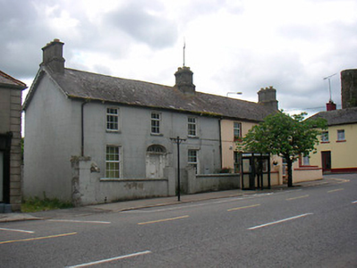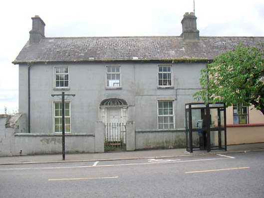 Semi-detached three-bay two-storey Georgian-style house, built c.1840. One of a pair with building to south. Pitched natural slate roof with rendered chimneystacks to either end, clay ridge tiles and cast-iron rainwater goods. Rendered ruled-and-lined walls with painted finish. Square-headed window openings with cut-stone sills and uPVC windows. Segmental headed doorcase with timber surround with console brackets supporting cornice and teardrop fanlight above. Replacement uPVC door. Set slightly back from road with small yard to front enclosed by rendered wall and piers with cast-iron gate.