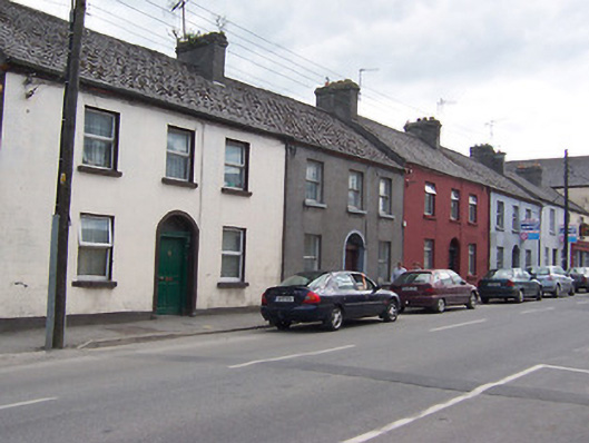 Terraced three-bay two-storey house, built c.1850. One of a terrace of four. Pitched natural slate roof with rendered chimneystacks to either end (east and west) and cast-iron rainwater goods. Smooth rendered walls, originally ruled-and-line rendered, with square-headed openings having stone sills and one-over-one pane timber sliding sash windows. Name plaque reading 'St Patrick's Terrace' to west end above first floor windows. Central round-headed doorcase having timber paneled door with overlight above. Road-fronted towards the west end of Mullingar.