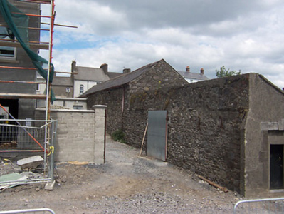 A good quality early nineteenth-century gateway associated with No 25 Plunkett Street (15310064). The cut limestone block-and-start surround is a noteworthy feature and is a good example of the stone mason’s craft. This gateway represents one of the very few remaining original rear entrances serving buildings to the centre of Mullingar town. The robust rubble limestone outbuildings complete the setting of this interesting architectural relic.