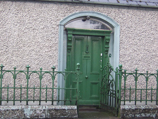 Detached three-bay single-storey house, built c.1850. Pitched artificial slate roof with rendered chimneystacks with terracotta pots over to either gable end. Cast-iron rainwater goods. Roughcast rendered walls over smooth rendered plinth. Square-headed window openings with replacement uPVC windows. Central segmental-headed architraved doorcase with early four panelled timber door, plain overlight and with timber pilasters with carved timber console brackets supporting moulded timber lintel/cornice over. Set back from road in own grounds with a low cut limestone plinth wall to the front (north) having decorative iron railings over and a matching gate, adding c.1880. Located to the east end of Bishop’s Gate Street.