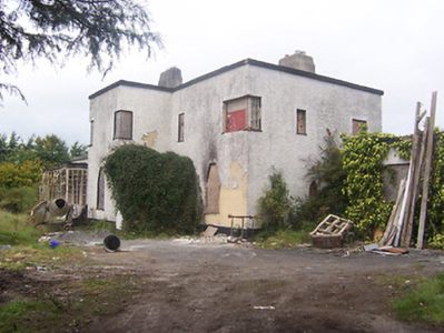 Detached three-bay two-storey modern movement house on L-shaped plan, built c.1935, having a single-bay flat-roofed garage attached to the east end. Currently out of use. Flat roof, hidden behind raised parapets with concrete coping over, having two tapered cement rendered chimneystacks. Roughcast rendered walls over smooth rendered plinth. Square-headed openings to first floor openings floor and splayed square-headed/sarcophagus-shaped window openings to ground floor openings having remains of cast-iron multi-pane casement windows, now mostly boarded-up. Wrap-around windows to a number of the corners at first floor level. Square-headed doorway to projecting porch at east side, now boarded-up. Single-storey box-bay window/conservatory to the west end of the front façade (south) having the remains of cast-iron multi-pane windows. Set back from road in own grounds to the east side of Mullingar Town.