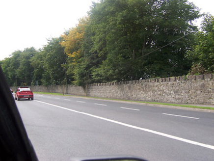Rubble limestone boundary wall associated with St. Loman’s Hospital (15311017), built c.1855, having staggered block coping over. Rebuilt gateway and wall to the east. Located to the southwest of St. Loman’s Hospital and to the northeast of Mullingar Town along the Delvin Road.