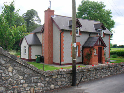 Detached three-bay two-storey arts-and-crafts style house, built c.1900, having a projecting single-bay gable-fronted red brick entrance porch with half-timbered detailing to the centre of the main façade (southwest). Modern extensions to the rear (northeast). Pitched artificial slate roof with overhanging eaves, two half-timbered gable-fronted dormer windows and with a red brick chimneystack to the northwest gable end. Roughcast rendered walls with red brick dressings to the openings and to the flush red brick quoins to the corners. Square-headed window openings with two-over-one pane timber sliding sash windows. Square-headed doorcase to the front face of porch having glazed timber sheeted door. Set back from road in mature grounds to the south end of Killucan with a modern rubble stone boundary wall to the road-frontage.