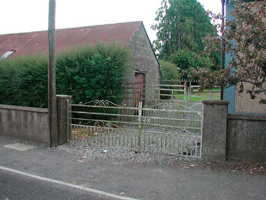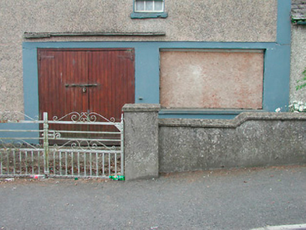 Detached three-bay two-storey house, built c 1820, having two-bay two-storey stores/retail outlet attached to the west end, continuing the roofline. Single-storey outbuilding attached to the west gable end. Pitched natural slate roof having a projecting smooth rendered eaves course and a rendered chimneystack with terracotta pots to either end of house. Cast-iron rainwater goods. Roughcast rendered walls over smooth rendered plinth course with rendered bands to the corners. Square-headed window openings with rendered reveals, stone sills and having six-over-six pane timber sliding sash windows to ground floor openings and six-over-three pane timber sliding sash windows over to the first floor openings. Central square-headed doorcase to house having a timber panelled door. Shopfront to the west end of structure having a square-headed doorcase flanked to the west by a square-headed window opening, now boarded-up. Set back from road towards the centre of Rathwire village with rendered boundary wall and rendered gate piers supporting wrought-iron gates to the north.
