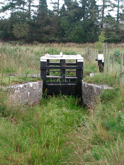 Sluice gate and retaining walls associated with the Royal Canal supply line from Riverstown River to Thomastown Harbour (15402731) to the south, erected c.1805. Now out of use with channel now dry. Comprising timber and steel sluice gates with four timber balance beams. Set in dressed limestone chamber. Machinery now missing. Located to the southwest of Rathwire and to the north of Thomastown Harbour.