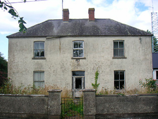 Detached three-bay two-storey former house, built c.1860. Formerly in use as a Garda Station, c.1928 - 1990. Now derelict. Hipped natural slate roof with two brick chimneystacks to the centre and cast-iron rainwater goods. Smooth rendered walls with square-headed window openings with four two-over-two pane timber sliding sash windows and one uPVC window to the front elevation (south). Cut stone sills throughout. Square-headed door opening to the centre with modern glazed timber door, glazed surrounds/side lights and with a plain overlight above. Set back from road in own grounds towards the west end of Ballymore. Front garden enclosed by rendered boundary walls having rendered gate piers supporting a mild steel entrance gate.