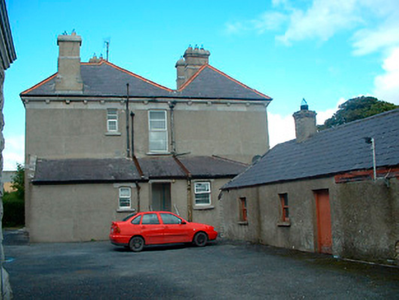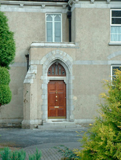 Detached double-pile three-bay two-storey parochial house, built c.1905, having an advanced single-storey entrance porch to the centre of the main façade (south), a projecting/advanced two-storey bay to the east end of the main façade and a full-height canted projection to the west side elevation. Hipped natural slate roofs with red clay ridge tiles with decorative finials, rendered chimneystacks with cut stone banding and a bracketed cut stone eaves cornice. Cast-iron rainwater goods. Roughcast rendered walls over projecting cut stone plinth with extensive cut limestone detailing, including a flush string course at ground floor window lintel level. Square-headed window openings with mostly replacement windows. Square-headed window opening to the first above doorcase to the centre of the front façade having paired cusped timber window openings with stained glass. Pointed-arched door opening to the centre of the main façade having chamfered cut limestone surrounds and a six-panelled timber door with a leaded fanlight over. Set back from road in shared grounds to the north of the Roman Catholic church (15316005) with cast-iron railings, cast-iron openwork gate posts and cast-iron gates to the south. Single-storey outbuildings to the east side having hipped roofs , rendered walls, square-headed window openings with timber sash windows and square-headed doorways with timber sheeted doors.
