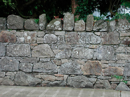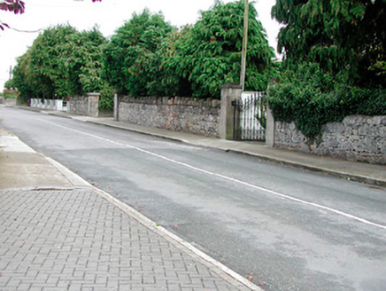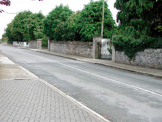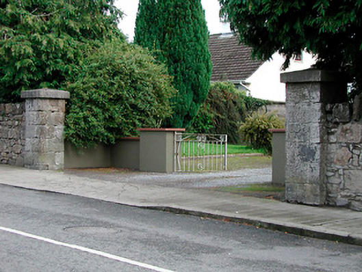 A robustly-built gateway, which represents an attractive feature on the streetscape of Moate to the north of the town. This gateway now forms the entrance to a modern house but may have been originally associated with a former Royal Irish Constabulary barracks, which stood just to the south of this location (map 1914). Gateways of this nature were once a common feature of in Irish towns and villages but are becoming increasingly rare today due to removal to accommodate modern needs and it is refreshing to find these piers insitu and in a well-maintained. The limestone boundary walls running away to the north and the south complete the setting of this unassuming composition.