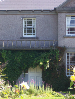 Pair of semi-detached two-bay two-storey houses, built c.1930, each having an advanced gable-fronted bay to the entrance front (west). Hipped slate roofs, pitched to gable-fronted sections, having rendered chimneystacks and rendered eaves course/band with brackets. Smooth rendered finish to the ground floor with dry-dash finish over to the first floor, separated by a rendered string course. Simple rendered bands to gables (creating pediments) and raised rendered quoins to the corners. Square-headed window openings having timber sliding sash windows with margin glazing to the building to the north and replacement windows to the building to the south (retaining original glazing pattern). Square headed door openings with timber panelled doors having glazed overlights and surrounds. Projecting flat-roofed canopy over each doorway having a balustraded parapet over. Set back from road in own grounds to the north of the centre of Moate. Rendered boundary walls to the west.