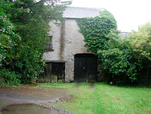 Complex of single, two and three-storey outbuildings associated with Moat View (15317053), built c.1762, comprising a stable block, coach house, ancillary structures and a possible estate worker’s house. Arranged around a central cobbled courtyard to the southwest of the main house. Now out of use and in a semi derelict condition. Pitched natural slate and corrugated metal roofs. Roughcast rendered walls, now partially failing, over rubble stone construction. Square-headed window openings with remains of timber sash windows and timber louvers. Square and segmental-headed door openings with the remains of timber sheeted doors and half doors. Brick dressings to a number of the openings. Segmental-headed carriage arch to the north range gives access to courtyard. Three-bay two-storey structure with a central cut stone round-headed doorcase to the southeast side of the complex, possibly a former worker's house. Set back from road in extensive mature grounds, shared with Moate View House, to the east side of Moate.