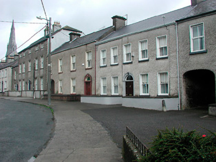 Terraced five-bay two-storey house, built c.1810. Pitched artificial slate roof having a rendered chimneystack to either gable end (north and south). Cast-iron downpipe with cast-iron hopper to the south end. Roughcast rendered walls having square-headed window openings with cut stone sills and two-over-two pane timber sliding sash windows. Central round-headed doorway to the main façade (west) having a cut stone architraved doorcase with a scrolled fluted keystone over and a panelled door having a plain fanlight over. Set slightly back from the road to the west side of the Newtown suburb, Moate. Low rendered walls with curved corners to the street frontage.