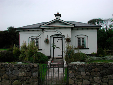 Detached three-bay single-storey former gate lodge associated with Middleton Park House (15318019), built c.1850, having a advanced pedimented central bay to the main façade (south) and an extension to the rear (north). Now in use as a private house. Hipped artificial slate roof with overhanging bracketed eaves and a central rendered chimneystack. Square-headed window openings, set in segmental-headed recesses, having timber casement windows. Square-headed doorcase to the front face of the projecting bay, set in a segmental-headed recess, having a timber sheeted door. Flight of cut stone steps flanked to either side by ashlar limestone plinth walls to either side gives access to doorway. Set back from road in own grounds to the northeast of Middleton Park House (15318019). Rubble limestone boundary wall and wrought-iron flat bar gate to the front (south) and wrought-iron flat bar railings to the east. Located to the east of Castletown Geoghegan.