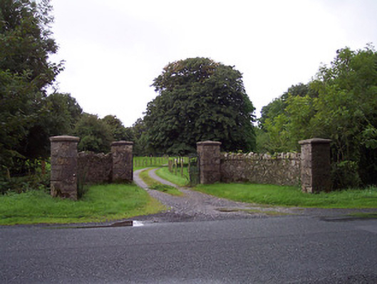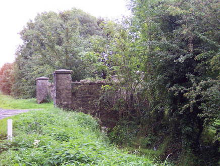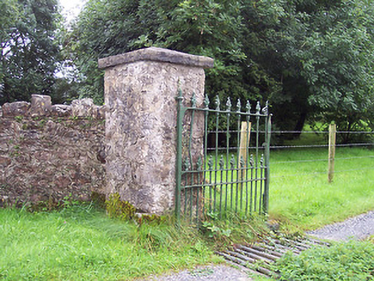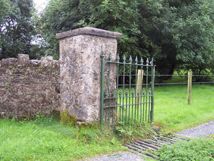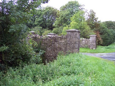 Main entrance gates serving Sidebrook House (15320019), erected c.1835, comprising a pair of roughcast rendered gate piers (on square-plan with cut stone capping over) supporting a pair of cast-iron gates. Entrance flanked to either side (northwest and southeast) by sections of rubble stone wall (on concave-plan having crenellated coping over) and terminated by roughly dressed limestone gate piers on square-plan with cut stone capstones over. Gives access to house over ditch. Located to the northeast of Sidebrook House and to the southeast of Rochfortbridge.