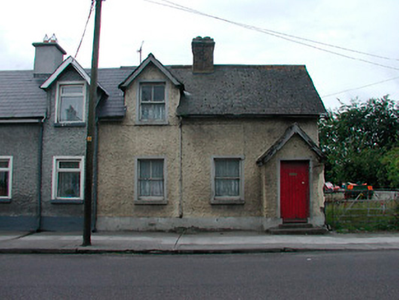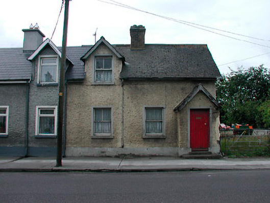 Semi-detached three-bay single-storey local authority house with dormer attic, built c.1900, now vacant. One of a pair with the building to the east. Pitched natural slate roof with brick chimneystack and cast-iron rainwater goods. Roughcast rendered walls over smooth rendered plinth. Gable-fronted dormer window with pitched natural slate roof to facade having a square-headed opening with two-over-two pane timber sliding sash window. Square-headed window openings to rest of structure with stone sills and two-over-two pane timber sliding sash windows. Projecting gabled fronted entrance porch to western-most bay with pitched natural slate roof and simple bargeboard. Square-headed door opening with timber door. Fronting onto footpath at road edge to west-end of Kilbeggan.