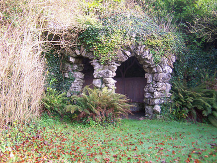 An appealing rustic grotto of some romantic quality, which probably dates to the late eighteenth-century. It is constructed of water-eroded limestone brought from nearby Lough Derravaragh, which can be seen to the south/southwest from the interior of the grotto. It was probably built at the same time the formal water gardens were removed and the garden was re-laid in its present romantic Picturesque form, c.1780. It forms part of an important and extensive group of structures associated with Tullynally Castle (15400321) and is an appealing addition to the built heritage of Westmeath in its own right.