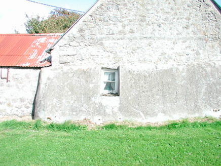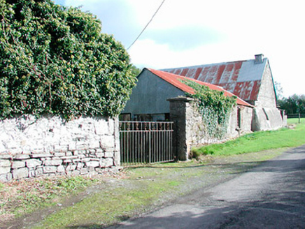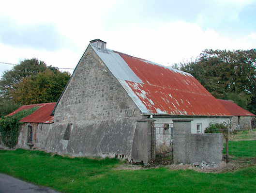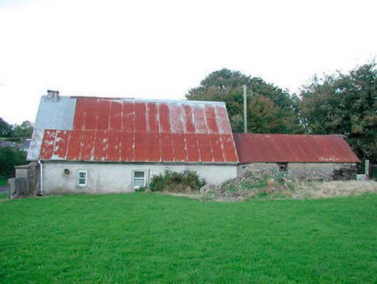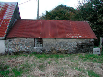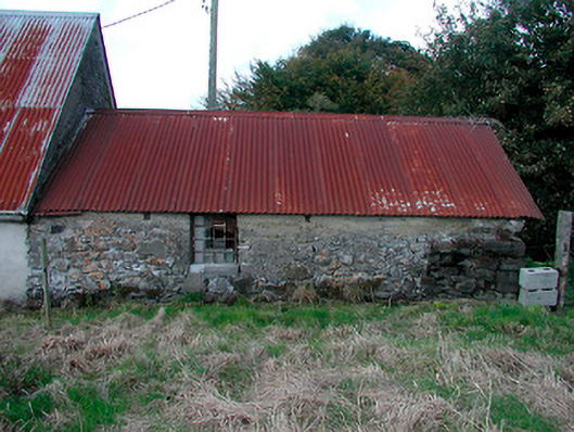 Semi-detached three-bay single-storey vernacular house, built c.1770, having attached single-storey outbuilding to the north end and outbuilding adjoining to the south end of the west-facing elevation. Pitched corrugated-iron roof, with thatch surviving underneath, having single chimneystack to the south end and cast-iron rainwater goods. Rubble limestone walls with render over. Pronounced buttress/base batter to south gable end, facing road. Square-headed window openings with stone sills and one-over-one pane timber sliding sash windows. Byre/outbuilding attached to north end having rubble limestone walls, pitched corrugated-iron roof and rubble limestone walls with square-headed window openings having cast-iron windows. House set back from road at a right angle with rubble limestone and rendered walls to road-frontage. Main entrance to west side of house having rubble limestone piers (on square-plan) and modern wrought-iron gates. House located adjacent to the east of Scurlockstown Cross Road.