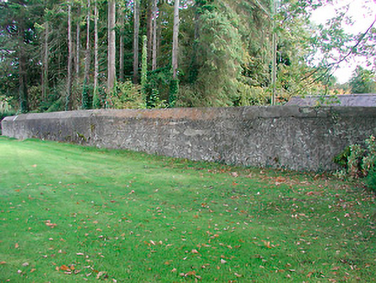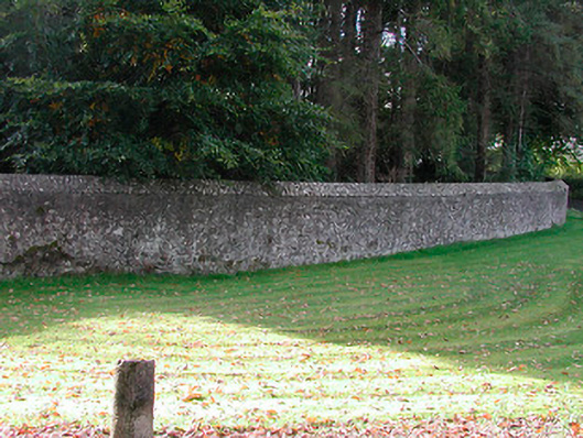 Estate wall, extant 1837. Road fronted at perimeter of grounds of Ballinlough Castle.