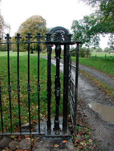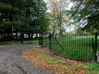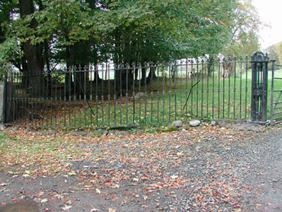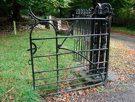 A fine set of entrance gates and railings, which forms a suitably elegant entrance to Heathstown House (15400911). These interesting gates display very high levels of ironmongery and have an unusual combination of wrought-iron and cast-iron elements, which are of some technical and artistic merit. These gates date to the mid nineteenth-century and were probably built at the same time as the (disused) gate lodge to the east was constructed. This gate along with the associated railings, makes an pleasing visual statement in the rural countryside to the southeast of Clonmellon and forms part of an interesting group of structures associated with Heathstown House.