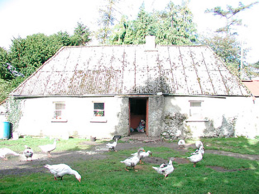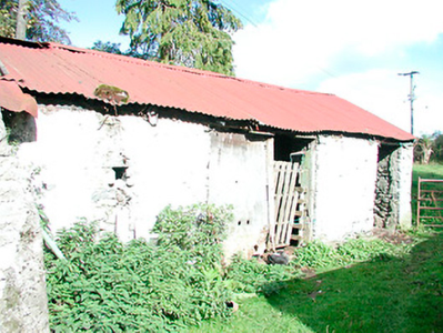 Detached three-bay single-storey vernacular house, built c.1860, with lobby entry plan. Projecting single-bay porch on semi-circular plan to the main (south) elevation. Hipped corrugated roof with a single (off centre) rendered chimneystack and cast-iron rainwater goods. Rubble limestone walls having roughcast render over, now failing. Square-headed window openings with cut sills and one-over-one pane timber sliding sash windows and one replacement uPVC window. Replacement door to projecting porch. Rubble limestone outbuilding attached to east gable with pitched corrugated roof over. Set back from road in own grounds with gravel forecourt to the south.