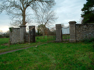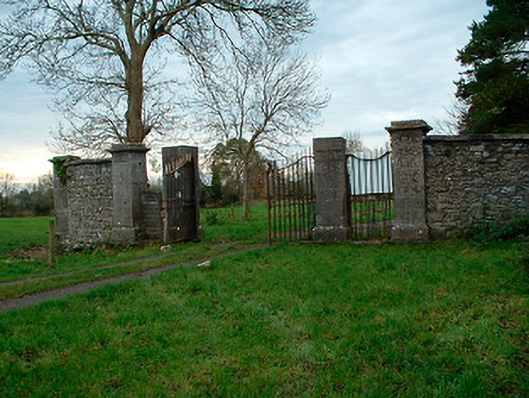 An attractive and well-built gateway that once served as the main entrance to Tristernagh Demesne. It is constructed of fine cut limestone masonry and still retains good cast-iron gates despite its now dilapidated condition. Tristernagh was originally an important Augustinian Abbey, founded c. 1200 by Geoffrey de Costentin. This abbey was abandoned following the Dissolution and was granted to the Piers Family. Sir William Pigot Piers apparently incorporated much of the fabric of this abbey into a new dwelling house in 1783, causing much local 'outrage'. A new house was built to the north of the original abbey/house in the early nineteenth-century and it is likely that the present gates were built to serve this structure. This house has been subsequently demolished. These gates are sited adjacent to a ruined fifteenth century church with later graveyard (15401112), collectively adding historical interest and visual appeal to the local landscape.