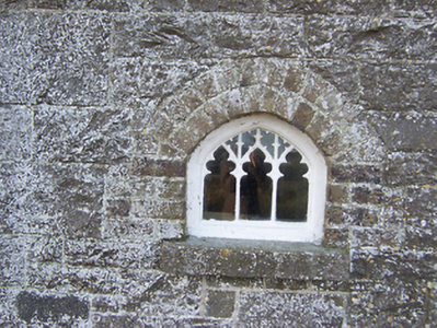 An interesting pair of worker's houses with a rather eclectic and eccentric character and charm. The unusual layout and styling suggests that these buildings may have been constructed using fabric from other buildings on site. The pointed-arched windows with the Y-tracery and Perpendicular tracery mirrors the style of the windows found on the main castle/house itself, Knockdrin Castle (15401222). The lead 'insurance badge' is an unusual item of artistic merit and may be connected to the military. These semi-detached houses were built by the Levinge Family of Knockdrin Castle to provide accommodation for workers and their families and remain integral elements of this important demesne.