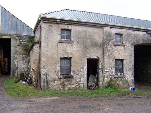 Complex of outbuildings arranged around a courtyard to the east of Reynella House, built c.1770, comprising a seven-bay two-storey structure with a central segmental-headed carriage arch and hipped corrugated metal roof and a two-storey range on L-shaped plan with a natural slate roof. Now in use as domestic outbuildings. Lime rendered walls over rubble stone construction. Square-headed window openings throughout with timber sash windows. Two segmental-headed carriage-arches to south side of L-shaped structure. Remains of timber battened doors to door openings and double timber battened doors to carriage-arches.