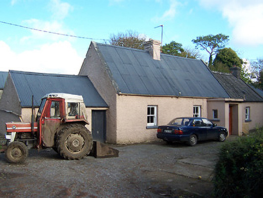 Detached three-bay single-storey house with projecting flat-roofed porch to east end, built c.1860. Two-bay single-storey extension to east and single-storey shed to west end. Pitched corrugated-iron roof to main structure with raised verges, cast-iron rainwater goods and central rendered chimneystack. Pitched corrugated-iron roof to shed to west and pitched corrugated asbestos/cement roof to extension to east. Roughcast rendered walls with smooth rendered finish to porch. Square-headed windows with stone sills and two-over-two pane timber sliding sash windows. Square-headed entrance to porch with glazed timber door. Set back from road in own grounds with rendered boundary wall and rendered gate piers on square-plan to east.