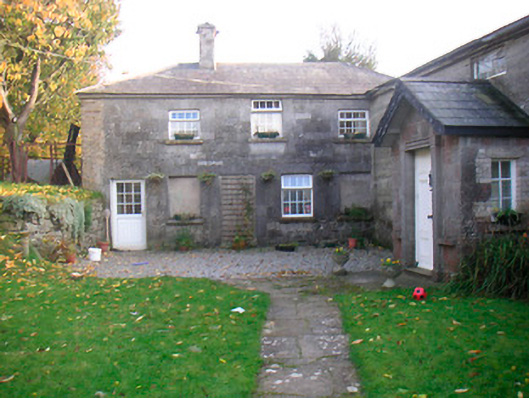 An impressive and substantial complex of outbuildings and ancillary structures originally serving Mosstown House (now demolished). This complex is very well-built and has good quality dressed limestone dressings to the openings. The three-bay two-storey pedimented breakfront section to the centre of the northern range is particularly impressive and indicates that this was once a demesne of some wealth. The building to the southwest end of this complex, now in use as a private house, appears to be later, c.1930. The fine cut stone doorcase, now forming the entrance to this converted house, may of be removed from the remains of Mosstown House and moved to its present site. This extensive complex gives an interesting historical insight into the extensive resources needed to run and maintain a large country estate in Ireland in the nineteenth century. The remains of the walled garden to the southeast and the good quality cast-iron gates to the east complete the setting of this interesting composition. Mosstown was the home of a branch of the Fetherston Family during the late eighteenth and the nineteenth century.