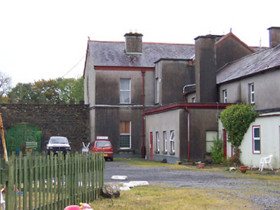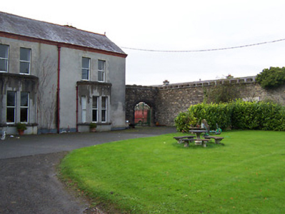 Detached four-bay two-storey country house, built c.1870, having full-height two-gable fronted bays to the south end of the main elevation (east) and a multi-bay two-storey return to the rear (west). Two-storey box bay window to the southern most bay and two single-storey flat-roof canted bays to the north end of the main elevation (east). Pitched natural slate roofs with moulded red brick eaves cornice, red clay ridge tiles and rendered chimneystack. Terracotta finials to gable ends. Cast-iron rainwater goods. Cement rendered walls having square-headed window openings with one-over-one pane timber sliding sash windows, paired to the two northern bays and grouped in three to the box bay window. Rendered block-and-start surrounds to the majority of the first floor openings. Square-headed door opening to the second gabled bay from the south having rendered block-and-start surround and a timber panelled door having an overlight above. Set back from road in own grounds with a substantial complex of outbuildings (15403018) to the rear (west). Crenellated boundary wall to the northeast of house. Located to the northeast of Moate.