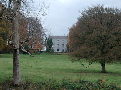 Detached three-bay three-storey farmhouse, extant 1814, on a rectangular plan originally three-bay two-storey. Extended, 1886, producing present composition. Vacant, 1901. Sold, 1904. Occupied, 1911. Pitched slate roof with crested roll moulded clay ridge tiles, coping to gables with rendered chimney stacks to apexes having stepped capping supporting terracotta pots, and cast-iron rainwater goods on rendered eaves. Roughcast walls. Round-headed central door opening with concealed dressings framing timber panelled door having overlight. Square-headed window openings with sills, and concealed dressings framing six-over-six timber sash windows. Set in landscaped grounds with rendered, ruled and lined piers to perimeter having capping supporting wrought iron double gates.