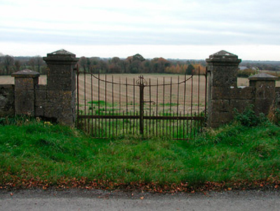 Field gates, erected c.1860, comprising a pair of dressed limestone gate piers, on square-plan with moulded cut limestone capstones over, supporting a pair of wrought-iron double gates with decorative finials and curled clasps. Central gate piers flanked by smaller outer cut limestone gate piers on square-plan with pyramidal capstones over. Boundary wall runs away to the east and west. Located to the south of Horseleap and adjacent to the west of the gates to Ballard House (15403704).