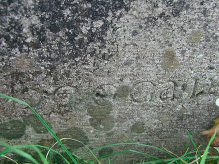 A nicely carved limestone artefact which is an interesting addition to the roadscape to the west of Kilbeggan, acting as a subtle reminder of the great age of coaching in Ireland. It probably dates to the late eighteenth-century, a period when the Grand Juries were responsible for a great deal of improvement in the road transport network throughout Ireland. The incised benchmark was carved by the Ordnance Survey in preparation for the production of the first Six-Inch Map Series in the 1830s. This milestone is one of a number surviving along the Dublin Galway Road.