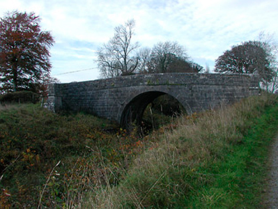 A typically well-built canal bridge, which is a valuable part of the architectural heritage of Westmeath and the industrial heritage of Ireland. Although humble in form, this structure has a simple and functional elegance. It is robustly built in fine stone masonry, which is testament to the long-term ambitions of the Grand Canal Company at the start of the nineteenth century. This bridge was built as part of Kilbeggan Branch of the Grand Canal, which was constructed between 1830-36 by the engineer William Dargan (1799-1867). Dargan had previously worked on the London-Holyhead rail link lead by the great English engineer Thomas Telford and he later went on to become one of Ireland's foremost railway engineers. This section of the canal was officially closed in 1961 but had been out of use from the end of the nineteenth century due to competition from the railway and road transport networks. This bridge is an appealing feature in the landscape of south Westmeath.