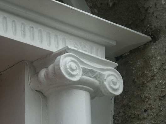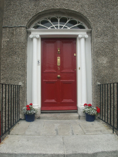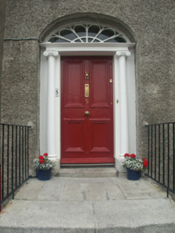 End-of-terrace three-bay two-storey over part raised basement house, extant 1862, on a rectangular plan; three-bay full-height rear (north) elevation. Occupied, 1901; 1911. One of a terrace of three forming part of a group of five. Flat topped hipped and pitched slate roof with clay ridge tiles, cement rendered chimney stack (east) having concrete capping supporting terracotta pots, and cast-iron rainwater goods on slate flagged eaves retaining cast-iron octagonal or ogee hoppers and downpipes. Roughcast walls. Segmental-headed door opening (west) approached by flight of five cut-granite steps between wrought iron railings, doorcase with three quarter-engaged Ionic columns on cut-granite plinths supporting shallow cornice on "patera"-detailed fluted frieze, and concealed dressings framing timber panelled door having fanlight. Square-headed window openings with cut-granite sills, and concealed dressings framing six-over-six timber sash windows. Square-headed window openings to rear (north) elevation with cut-granite sills, and concealed dressings framing six-over-six timber sash windows. Set back from street with cut-granite chamfered piers to perimeter having stringcourses below shallow pyramidal capping supporting "Fleur-de-Lys"-detailed wrought iron double gates.